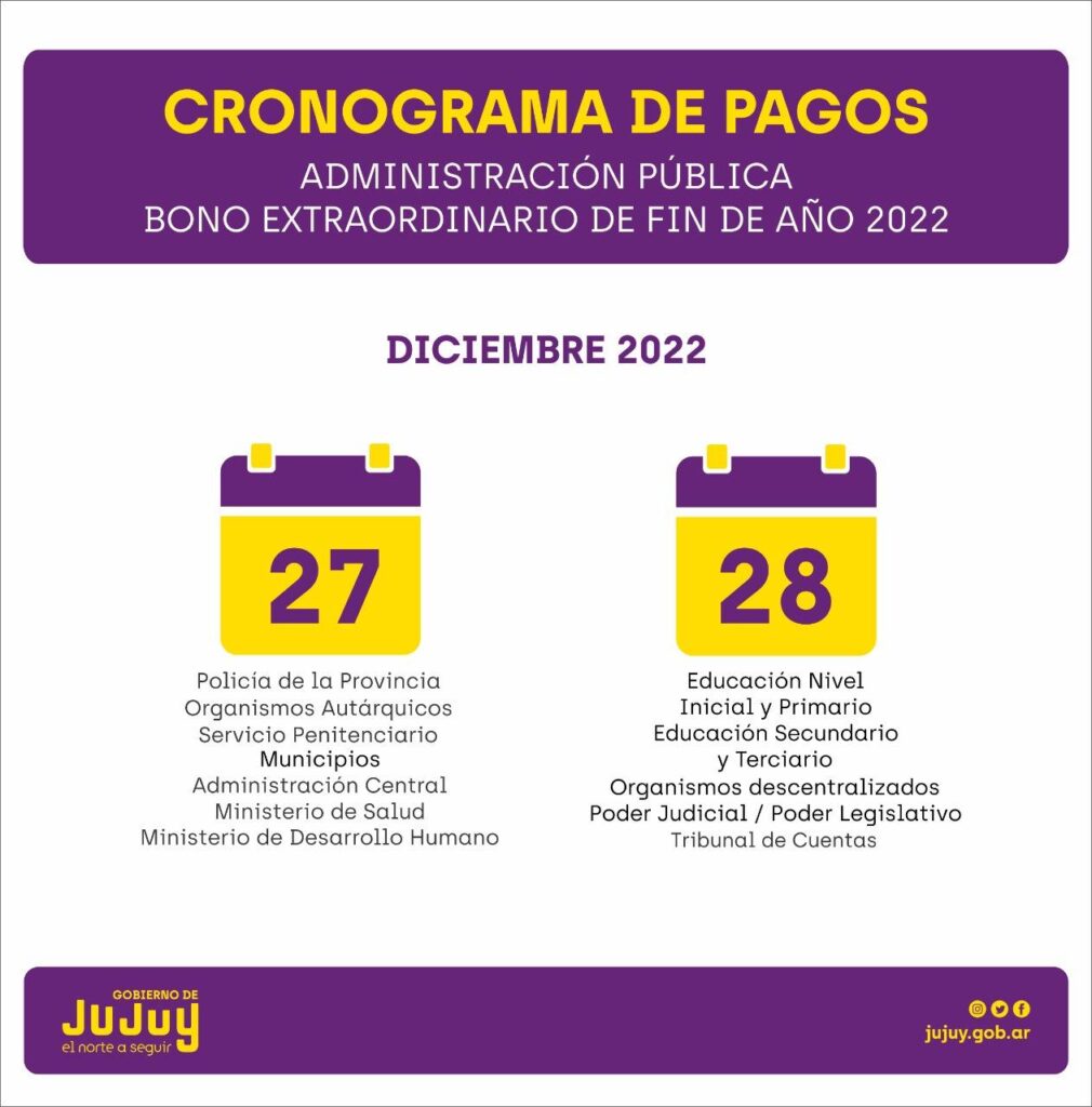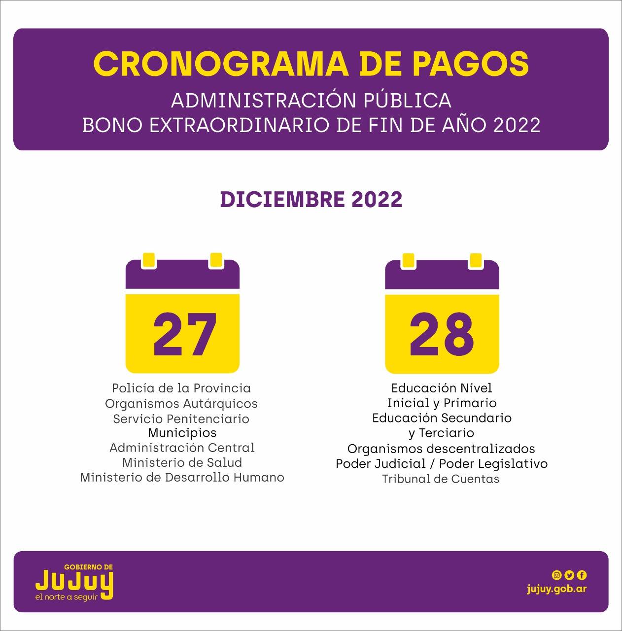 El 27 y 28 de diciembre se percibirá la primera cuota de este bono, el 27 lo harán policía de la provincia, organismos autárquicos, servicio penitenciario, municipios, administración central, ministerio de salud y desarrollo humano