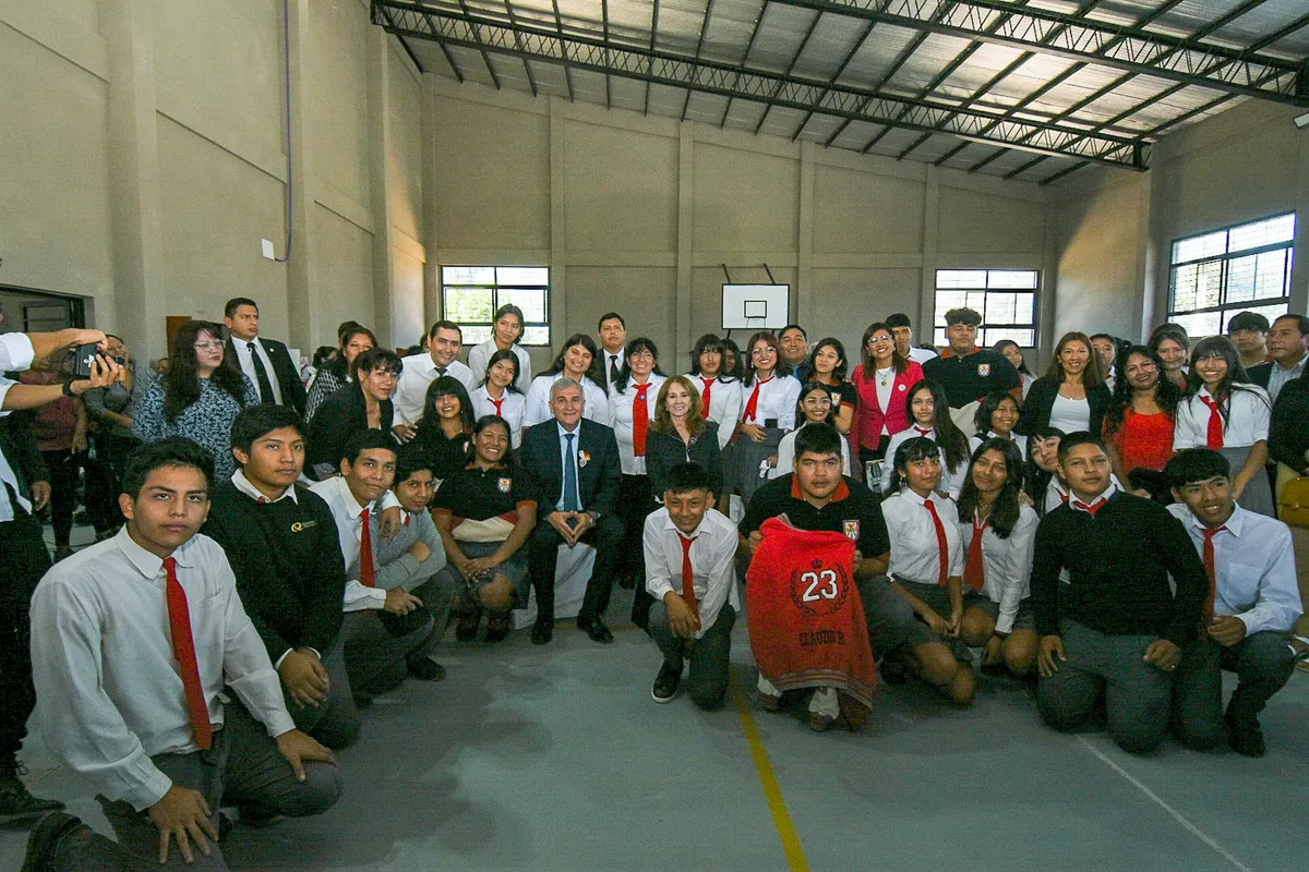El gobernador Gerardo Morales junto al ministro de Hacienda y Finanzas, Carlos Sadir y su par de Educación, María Teresa Bovi, encabezaron el acto de inicio del ciclo lectivo 2023 para Nivel Secundario en Jujuy, oportunidad en la que inauguraron el nuevo edificio del Colegio Secundario N° 41 en Santo Domingo, Perico, construida en marco del Programa de Mejora del Acceso y la Calidad Educativa (PROMACE), financiado con la renta de la planta de energía Cauchari.