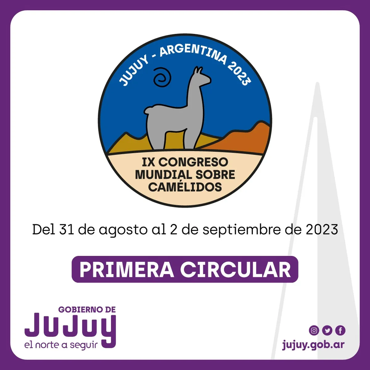 El Gobierno de la provincia de Jujuy, a través del Ministerio de Desarrollo Económico y Producción, tiene el agrado de anunciar la primera circular el “IX Congreso Mundial sobre Camélidos”, que se llevará a cabo entre los días 31 de agosto y 02 de septiembre de 2023.