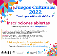 La Secretaría de Cultura informa que el próximo sábado 3 de setiembre en San Pedro tendrá lugar el primer regional de los “Juegos Culturales 2022” bajo el lema “Construyendo diversidad cultural”.