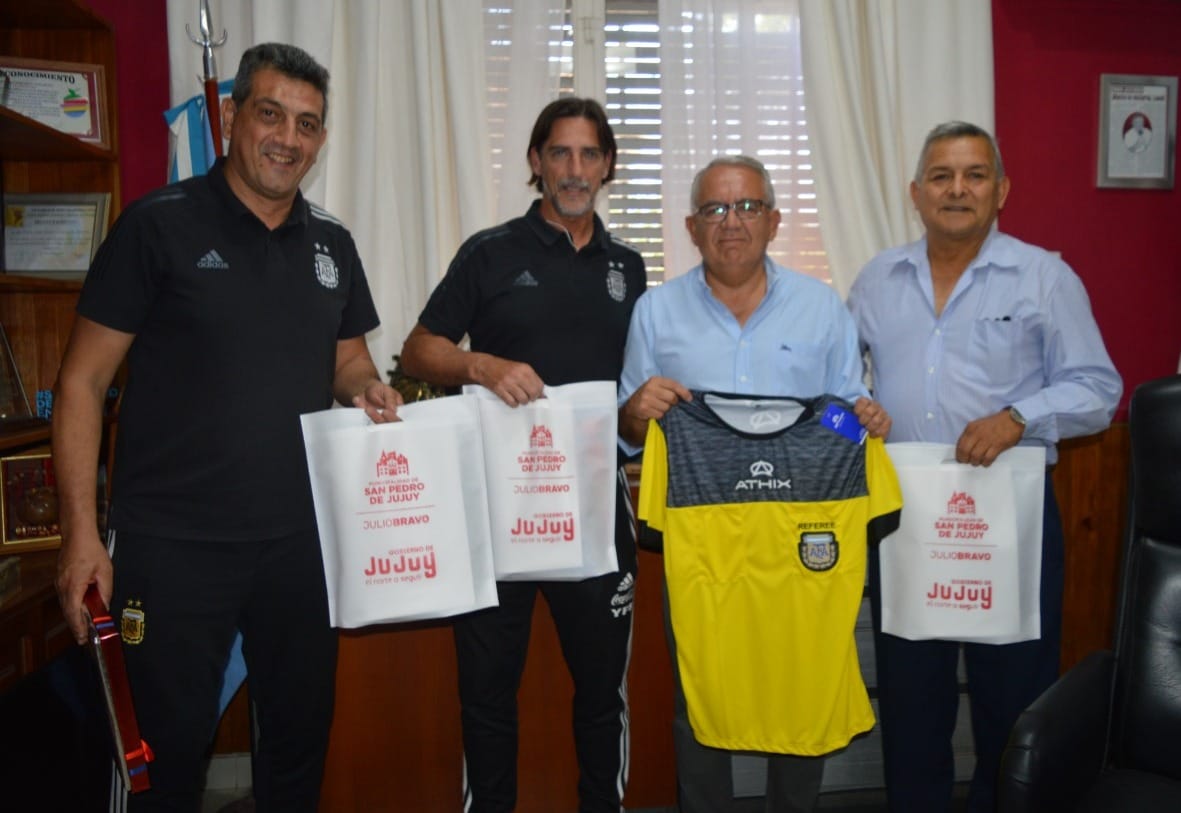 El Intendente de San Pedro de Jujuy, Doctor Julio bravo, recibió en su despacho a Sergio Pezzotta y Marcelo Aumente, ambos integrantes de la Comisión Arbitral del Consejo Federal de AFA.